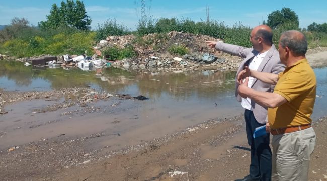Derbent Mahallesi Muhtarı Ruhi Başkurt ile Karacaali Çayı kenarında açıklamalarda bulunan Burhan Irk, Derbent Mahallesi’nin bu sorunun acilen çözülmesi gerektiğini söyledi.