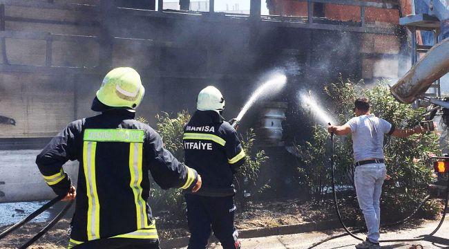 E-96 İzmir Ankara Karayolu, Çepnidere kavşağı yakınlarında Nurettin S. idaresindeki 60 TR XXX plakalı MDF yüklü TIR'da yangın çıktı.